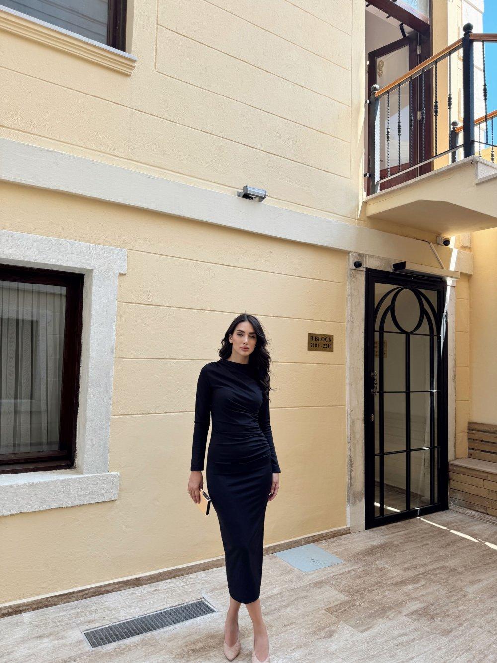Büzgülü Maxi Elbise 3046 Siyah