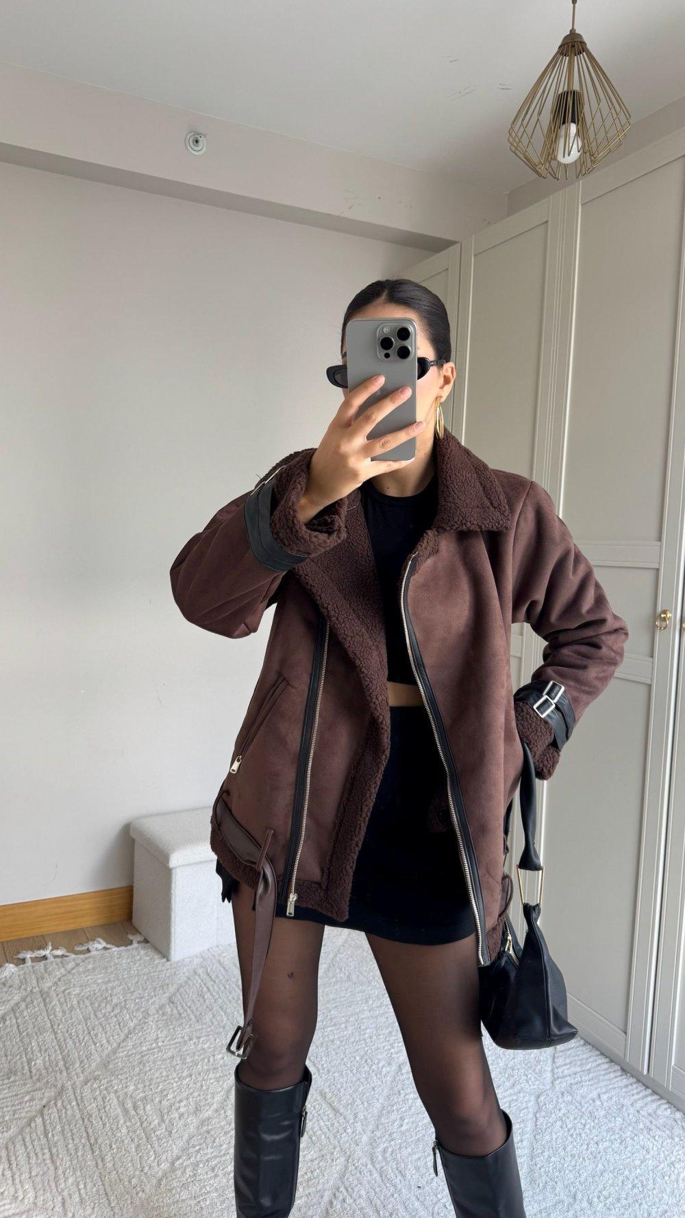 İçi Tamamen Peluş Kaplama Süet Kaban 2485 Acı Kahve
